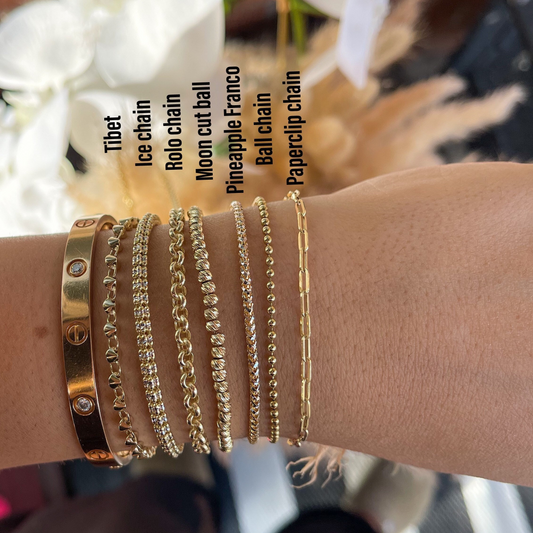 14K Solid Gold Bracelets • Ball Dainty Chain • Paperclip Bracelet • Dainty Arm Party Chains • Bracelet Stack