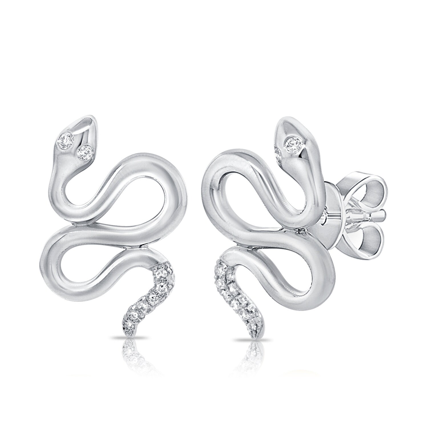 14K Diamond Snake Stud Earrings | Diamond Studs
