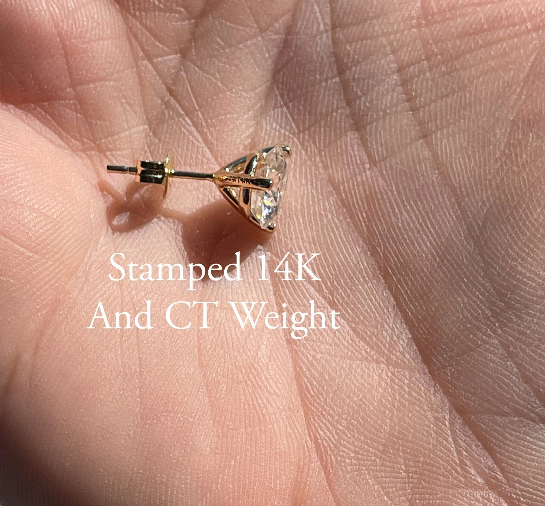 ◈Sizes Available: 3mm .10 Carat Each (.20 TCW for the pair) 4mm .23Carat Each (.45 TCW for the pair) 5mm .45 Carat Each (.90 TCW for the pair) 6mm .75 Carat Each (1.5 TCW for the pair) 7mm 1.2 Carat Each (2.4 CTW for the pair) 8mm 1.65 Carat Each (3.3 TCW for the pair)