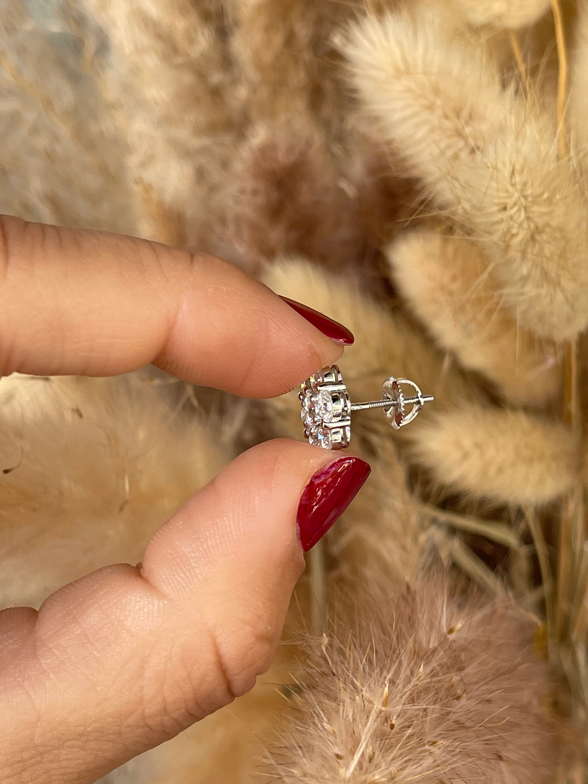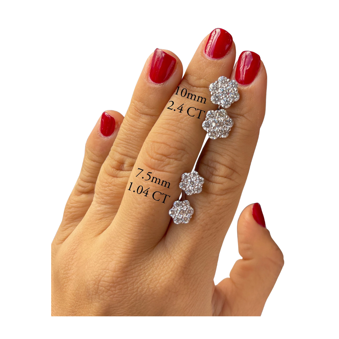 14K Solid Gold Moissanite Cluster Flower Screwbacks Stud Earrings | DEF VS Clarity| Diamond Studs