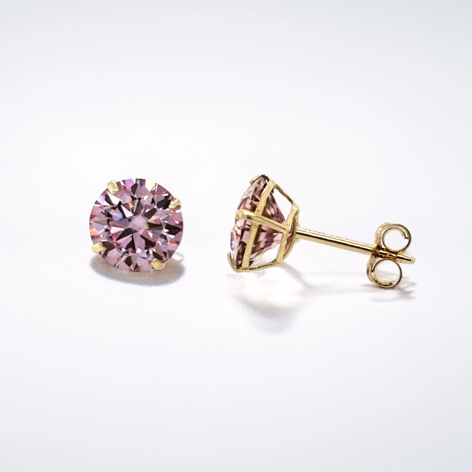 ♥Details♥ ♥Shape and cutting style: Brilliant ♥Color Grade: D ♥Clarity Grade:VVS1 ♥Cut Grade: Excellent ♥Color: Pink ♥Available In: 14K Solid Yellow Gold 14K Solid White Gold ♥Metal♥ STAMPED 14K Gold (including the backs) NOT plated or filled