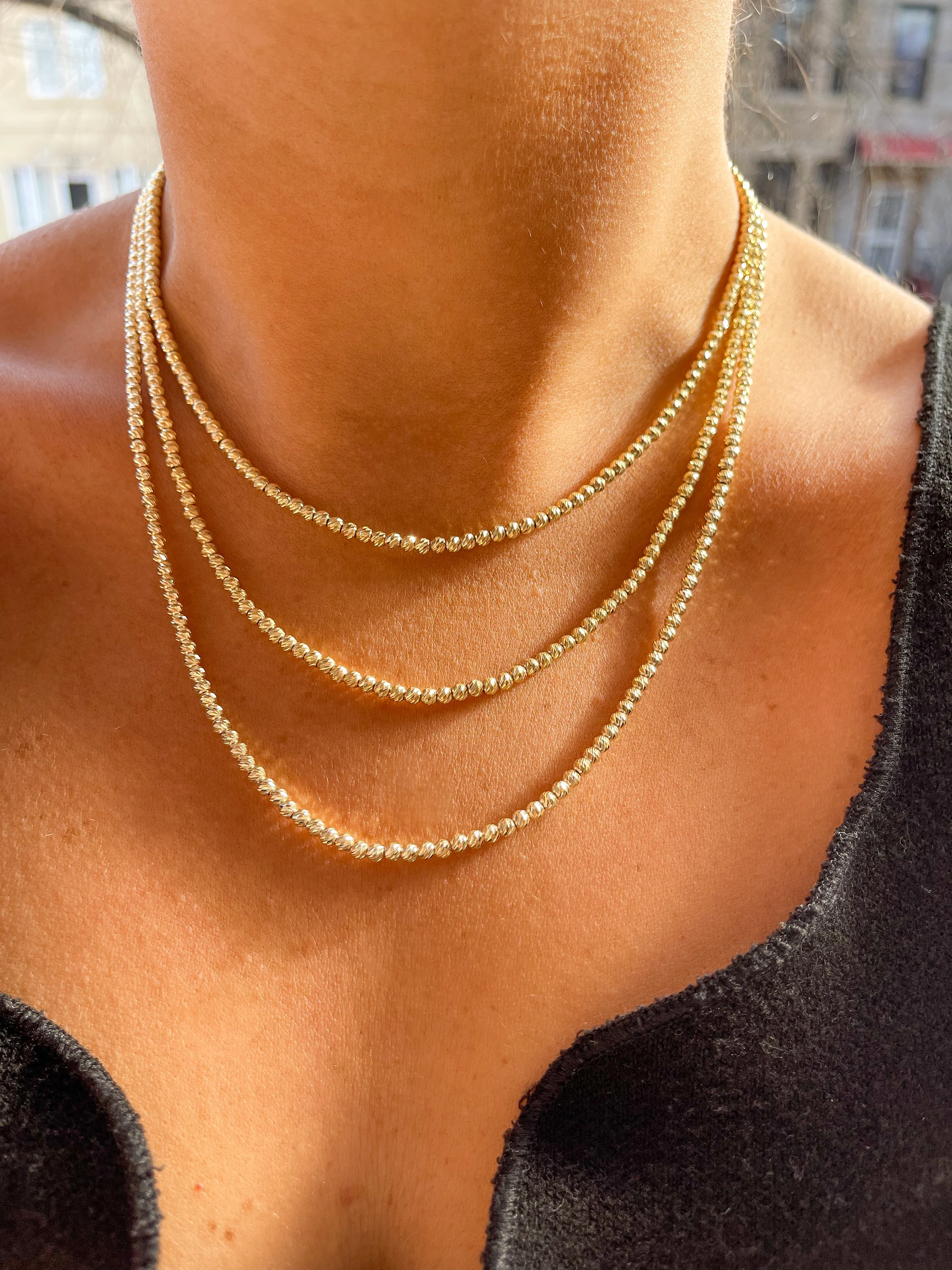 14K Solid Gold Slash Cut Ball Chain • Ball Dainty Chain • Gold Ball Necklace