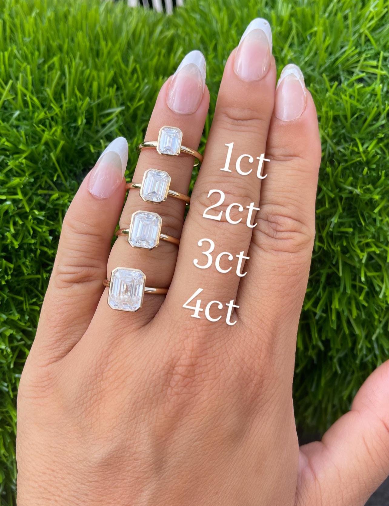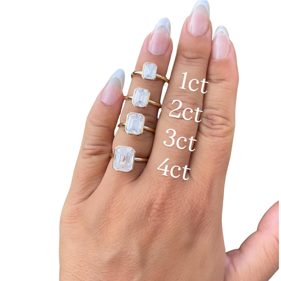 14K Yellow Gold Emerald Cut Moissanite Bezel Engagement Ring | 1ct 2ct 3ct 4ct